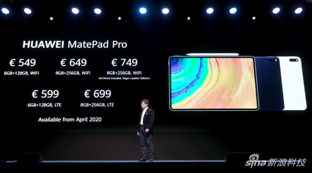 MatePad Pro 5G分为多个版本:Wi-Fi版,4G和5G三种。WiFi版本定价549欧元起,5G版本则最高799欧元。