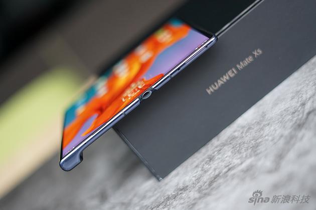 华为MateXs拿到手,最明显的改进来自转轴处,官方称之为“鹰翼式折叠设计” ,用户能看到的其实也只是外露那一小块,这也成了这代华为MateXs和上代产品外观最明显的区别。