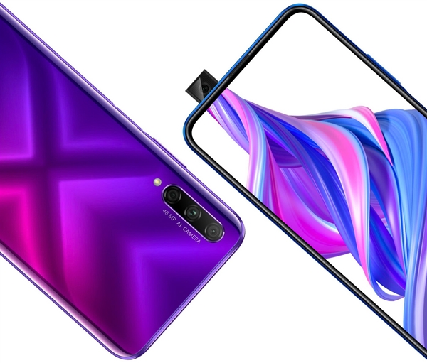 设计和配置方面,荣耀9X PRO海外版和国内版完全一致,采用3D幻变玻璃机身、侧边指纹识别,保留3.5mm耳机孔,幻夜黑、幻影紫、冰岛白三种配色,6.59英寸COF封装、升降式全面屏,前置1600万像素升降式摄像头,后置4800万像素主摄+800万像素超广角+200万像素景深三摄。