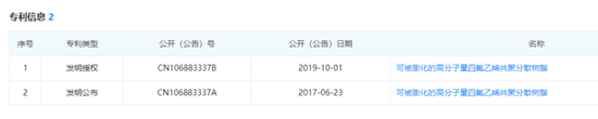 据悉,此次口罩滤芯中使用的是汉圃新材料科技公司获得国家专利授权的一种纳米纤维微孔薄膜。而根据企查查网站公开信息显示,汉圃新材料唯一一个获得授权的专利为“可被膨化的高分子量四氟乙烯共聚分散树脂”。