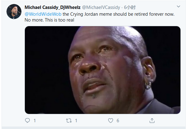在乔丹提及这个模因的时候,总算缓解了下整个会场严肃的气氛。菲利普·德弗兰科(Philip DeFranco)写道:“迈克尔·乔丹(Michael Jordan)谈论另一个哭泣的乔丹模因让我笑哭了。”