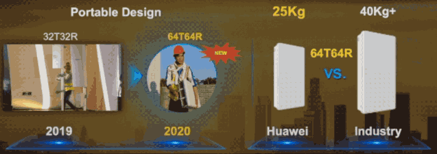 以其 5G Massive MIMO AAU 系统为例,它的第一大卖点是轻。根据欧洲监管的规定,如果移动网络基础设备重逾 25kg,就必须由最少 2 名工程师安装,但新型 5G AAU 仅重 25kg,1 个工程师也能安装(图上),就能大幅简化运营商的部署工序。