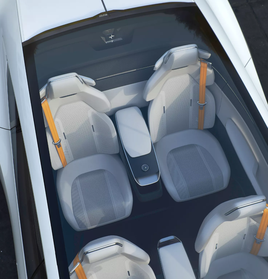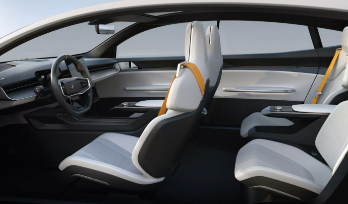 Polestar Precept采用诸多创新技术,以最大程度地减少对环境的影响。其中,内饰板和靠背由亚麻基复合材料制成,可减少80%的塑料废物,并将重量减少50%。 Precept座椅是用回收的PET 瓶进行3D编织而成,靠垫和头枕由回收的软木乙烯基制成。Polestar Precept地垫是用回收的渔网制成。