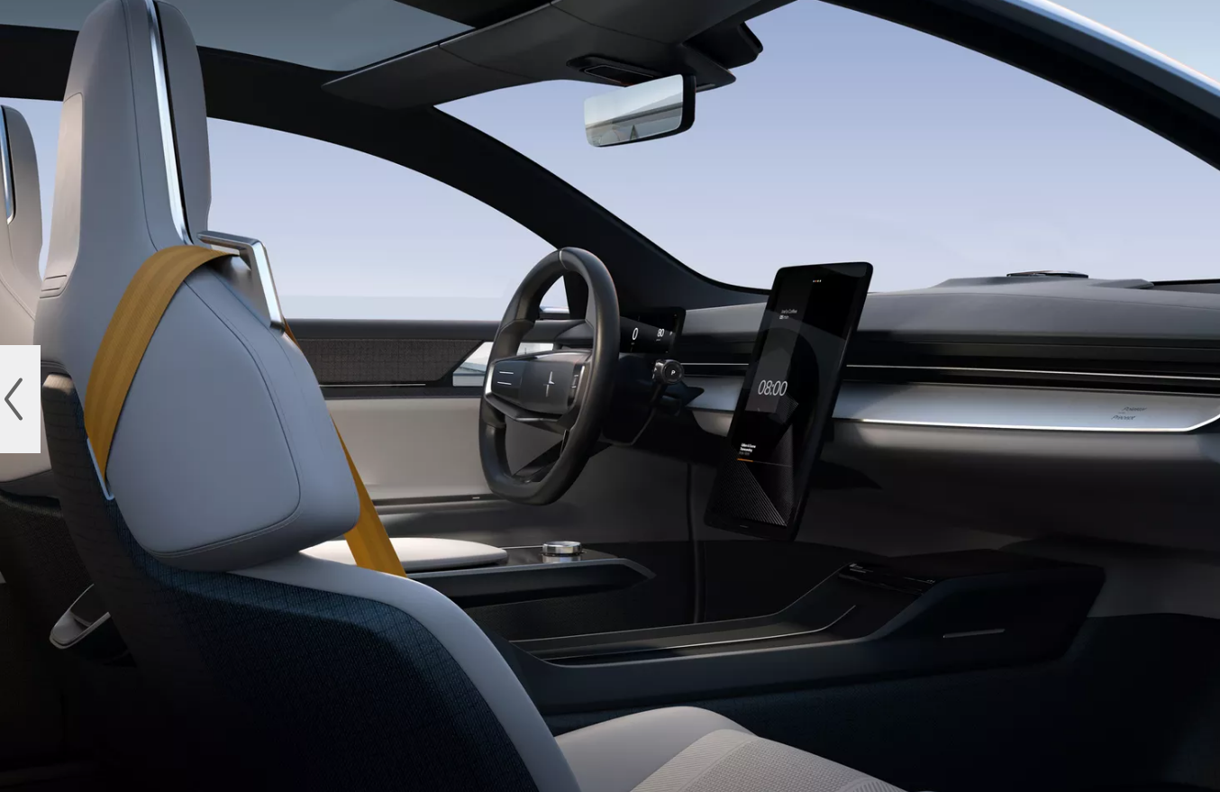 为了减少干扰,Precept配备了15英寸安装在仪表板上的触摸屏以及12.5英寸驾驶员显示屏,Polestar表示将使用先进的眼动跟踪和接近传感器,以受控方式提供信息方式。换句话说,当用户注视或伸出手触摸屏时,汽车的显示屏将变亮并更改其显示内容。