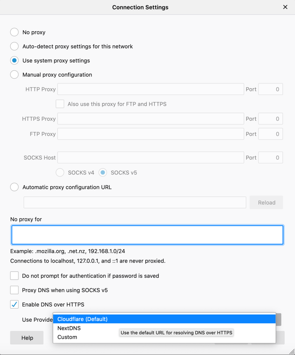尽管其他人很难在启用DoH的情况下查看您的DNS查找,但是用户浏览器所连接的DNS服务器仍然可以看到这些网站。因此,Mozilla说Firefox将提供两个受信任的DNS提供程序(Cloudflare和NextDNS),并且Cloudflare将用作默认值。 Mozilla概述了一系列隐私要求,任何DoH提供商都必须遵守这些隐私要求才能被视为受信任的解析器。