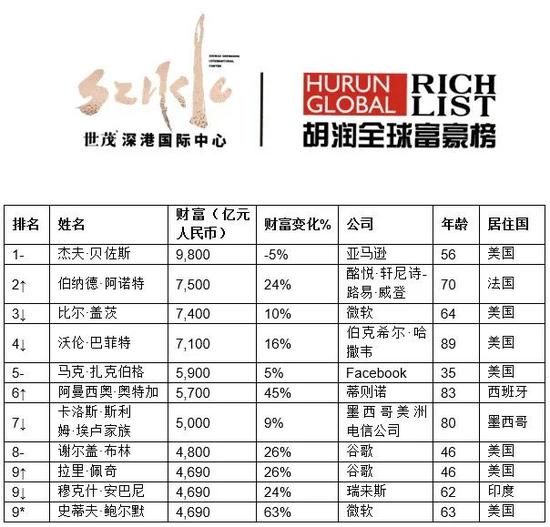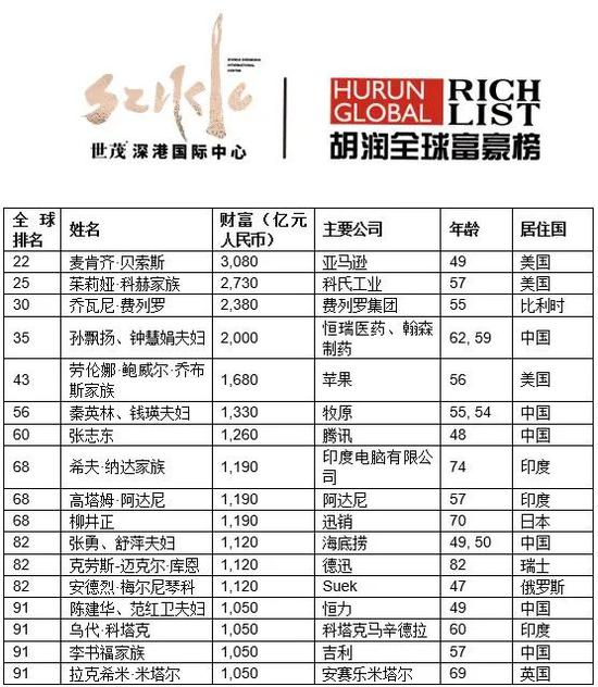 以下为《胡润全球富豪榜》详情: