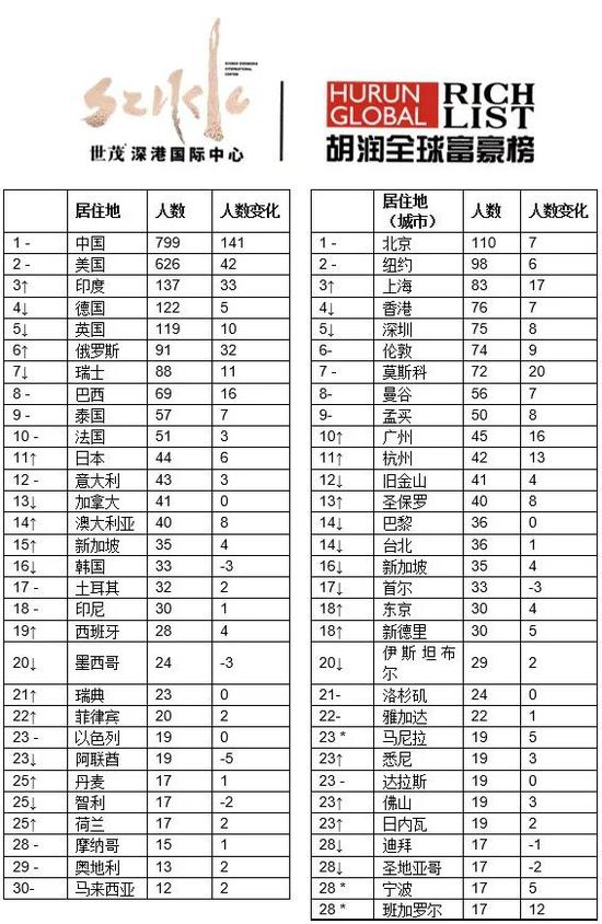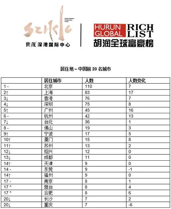 来源:《2020世茂深港国际中心•胡润全球富豪榜》↑对比去年排名上升 ↓对比去年排名下降 –对比去年排名不变
