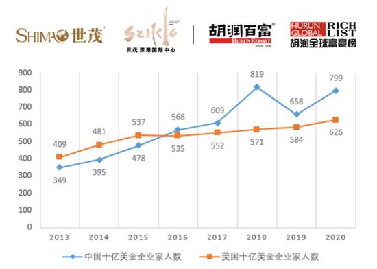 来源:胡润研究院 2020年创造了十亿美金企业家人数的新纪录,超过了两年前创下的纪录,比2013年增加了90%。
