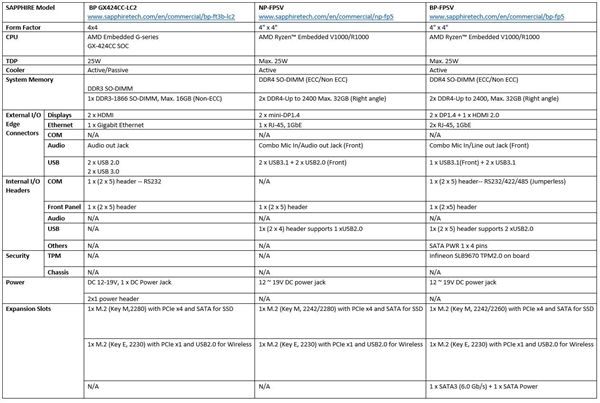 蓝宝石的迷你机长宽尺寸都只有4×4英寸(10.1×10.1厘米),其中“BP-FP5V”主动散热,搭载的是AMD锐龙V1605B、锐龙R1606G,均为14nm Zen架构。