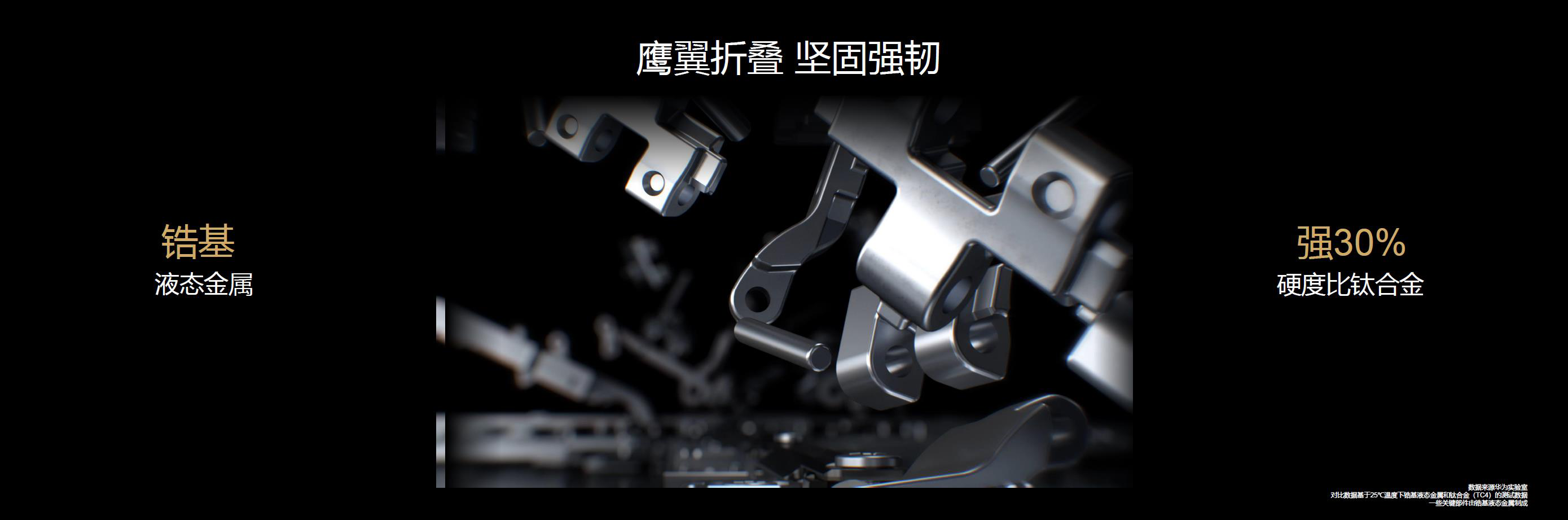 折叠屏手机的工艺难点,无疑是折叠区域的耐用性,相比华为Mate X,华为MateXs也进行了大量的升级。鹰翼铰链结构由100多个精密器件构成,整个铰链系统应用了多种特殊材料和特殊制作工艺。锆基液态金属被应用在鹰翼结构中的关键部位。这种材料的强度性能不逊钛合金,令铰链更可靠。