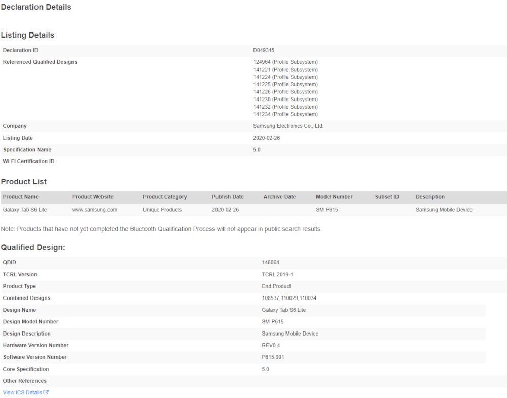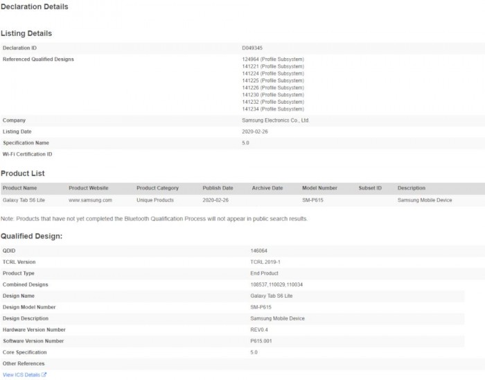1月下旬,以“全球首款5G平板”的头衔三星推出了Galaxy Tab S6 5G。而根据最新蓝牙认证消息称,三星有望在近期内推出Galaxy Tab S6 Lite,但是预估不会支持5G网络。根据外媒报道,型号为“SM-P615”的平板现身蓝牙SIG的Launch Studio,应该是去年7月首次亮相的Galaxy Tab S6精简版和亲民版。