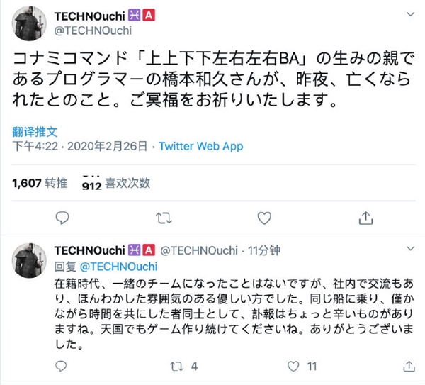 2月26日消息,据业内人士在推特称,科乐美经典游戏作弊码“上上下下左右左右BA”发明人桥本和久(Kazuhisa Hashimoto)于昨晚去世去世。桥本和久在1985年开发《宇宙巡航机》时添加了这条秘密指令,使用后的效果是所有武器满配,不过游戏正式发行后,他似乎忘记删除这条指令,并被玩家们挖掘出来。