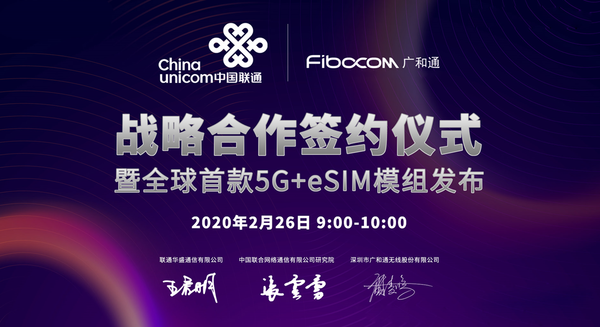 近来,大部分行业企业陆续复工复产,并在防控到位的基础上,将复工复产效率提升至最高,进而为共战疫情提供强力支撑。2月26日,中国联通和广和通线上战略合作签约仪式正式开启,届时发布全球首款5G+eSIM模组FG150和FM150。与此同时,这场具有特殊意义的签约仪式也成为“远程”“线上”发布会的重要表率。