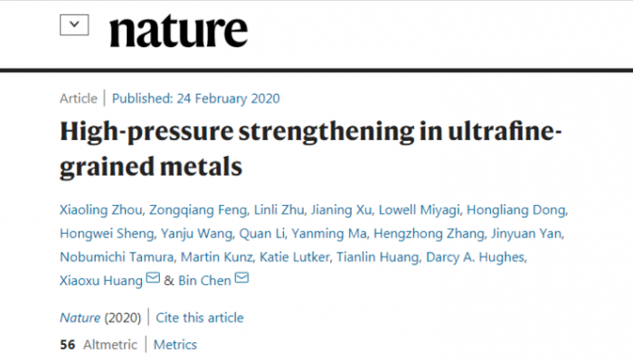 近日,重庆大学的最新研究成果上了《nature》期刊。2 月 24 日,重庆大学材料学院黄晓旭教授团队与北京高压科学研究中心陈斌研究院团队等联合在《nature》上发表了题为 High pressure strengthening in ultrafine-grained metals(超细晶金属的高压强化)的论文,该研究结果是材料科学领域的一大重要进展。