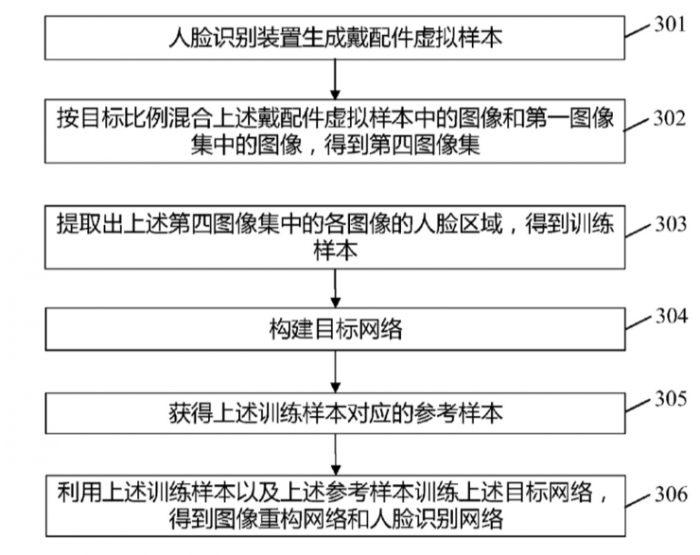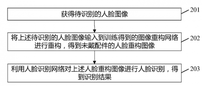 该专利显示,通过图像重构网络可以将戴配件(眼镜、口罩、帽子等)的人脸图像重构为未戴配件的人脸图像。
