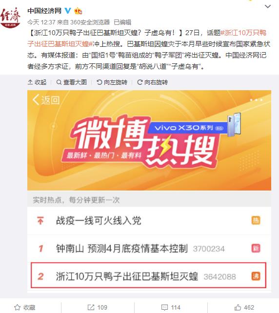 最近一段时间来,非洲、印度、巴基斯坦爆发了蝗灾,巴基斯坦已经找中国寻求援助。今天上午浙江10万只鸭子将出征巴基斯坦灭蝗的消息也刷屏了,微博阅读超过4亿。报道称,据浙江省农业科学院研究员卢立志介绍,一只鸡一天能吃掉70只蝗虫,一只鸭子则能吃掉200多只,拥有三倍作战能力。