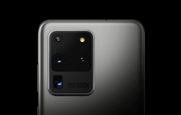 S20 Ultra配备矩阵式后置四摄,其中主摄高达1.08亿像素,0.8微米像素尺寸,支持九像素合一等效于1200万像素输出,F1.8光圈,OIS光学防抖,支持空前的100倍变焦,视频录制则支持8K30、4K60、1080p240、720p960。
