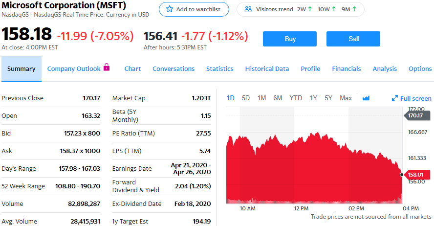 微软警告因供应链受到新冠肺炎疫情影响PC业务表现将低于预期后,星期四其股价跌幅一度达到4%。苹果和惠普也发布了相似的业绩预警信息。微软市值也因此缩水近500亿美元。微软星期三表示,供应链恢复正常的时间长于预期,Windows和Surface计算机业务受到的影响将大于预期。疫情的快速传播影响到各行各业,科技公司受到的影响尤其大,因为它们在中国的供应链面临压力。苹果是披露疫情影响其中国业务的第一家科技公司,PayPal和万事达也警告称其业务可能受到影响。数名华尔街分析师表示,他们预计其他依赖中国市场的科技公司也将发布业绩预警。Atlantic Equities分析师詹姆士·科德威尔(James Cordwell)在一封电子邮件中说,“鉴于PC供应链受到的影响,我认为英特尔也很有可能发布业绩预警。”Nucleus Research分析师安德鲁·麦克米伦(Andrew MacMillen)表示,戴尔和联想受到的影响可能更大。戴尔中国业务规模相当大。摩根大通分析师表示,微软的问题是供应链问题而非需求问题,但是,广泛的供应链问题,以及投资者对风险越来越讨厌,有可能逐步演变成需求问题。IDC星期四预测,受疫情影响,2020年PC出货量将降低4%。今天常规交易中,微软股价下跌11.99美元,跌幅为7.05%,报收于158.18美元。