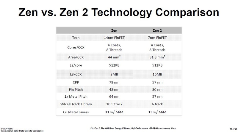 可以看到新工艺带来了相当高的晶体管密度提升,在同样的四核配置下,Zen 2单个CCX在L3倍增的情况下其面积是比Zen的单个CCX小上12.7mm2的。