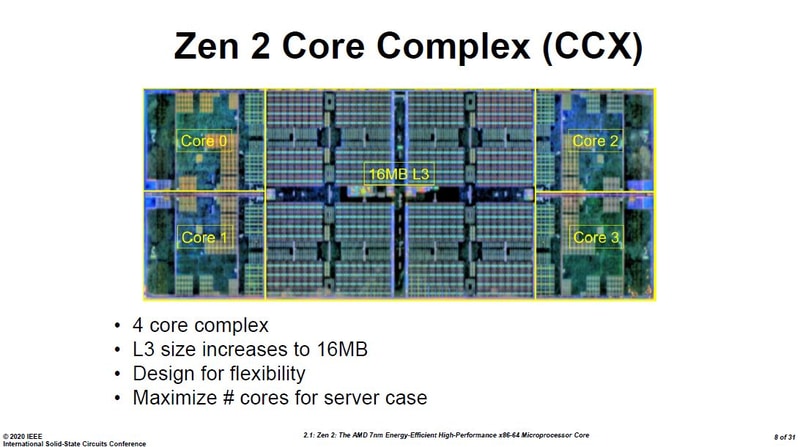 Zen 2的单个CCX,已经是老生常谈了的四核16MB L3配置。