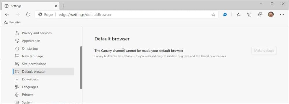 目前基于Chromium的Edge浏览器仍在不断开发中,从Canary通道版本开始不断测试和部署新功能。近日外媒TechDows注意到,在最新的Edge Canary版本中允许用户将该浏览器设置为系统默认浏览器,不过默认情况下处于禁用状态,而且微软推荐不要使用。
