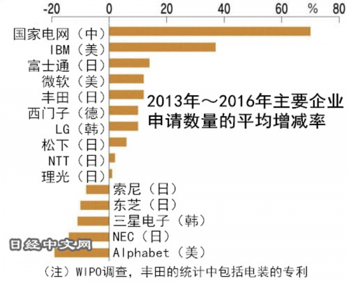 不过该报道同时指出中国企业的实力不容小视。根据WIPO的调查,在机器学习中的网购相关“推荐建议”和工厂设备的异常检测等领域,中国企业的专利数量飞速增长。中国国家电网2013~2016年的申请数量实现了每年7成的增长。该公司在电力管理领域的AI技术在世界上一枝独秀。由此可见,中国企业在AI专利申请质量的未来可期。