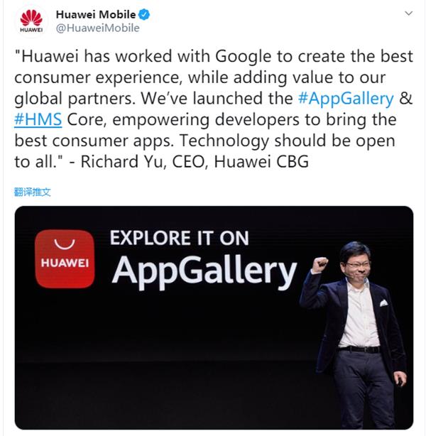 华为海外官推今天援用了消费者终端部门CEO余承东的一番话做了解释,他说华为与谷歌合作创造了最佳的消费者体验,给全球合作伙伴增加了价值。