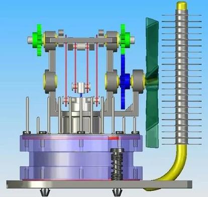 外媒报道称,微星已经根据这个原理开发了新型的CPU散热器,它可以利用CPU产生的热量驱动,这个热量会让活塞中的空气膨胀,然后热空气又可以推动风扇,风扇再给散热器散热,就这么循环起来了。