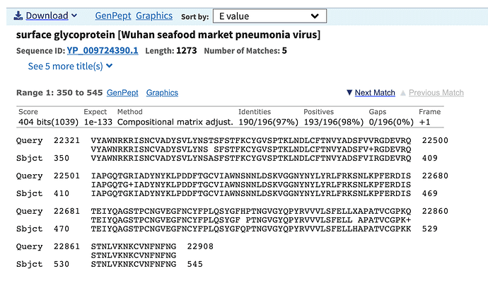 同时,从马来穿山甲中分离的冠状病毒基因与新冠病毒刺突表面糖蛋白(S)、小包膜蛋白(E)、基质蛋白(M)和核衣壳蛋白(N)的一致性依次为 90.4%,100%,98.2%,96.7%。S 蛋白受体结合结构域几乎与新冠病毒相同,仅有一个氨基酸序列差异。