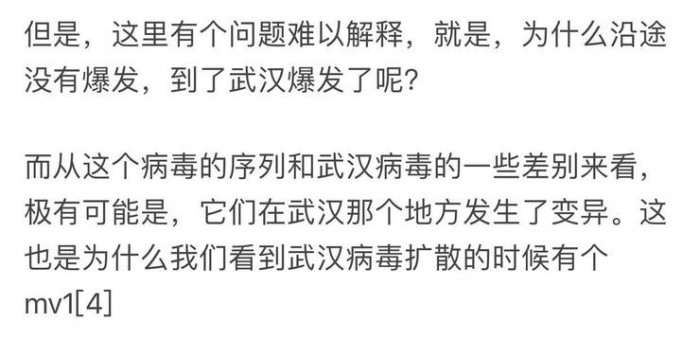 实际上,相关背景人士也表示,可能会出现病毒源于别处,在武汉变异的可能性。