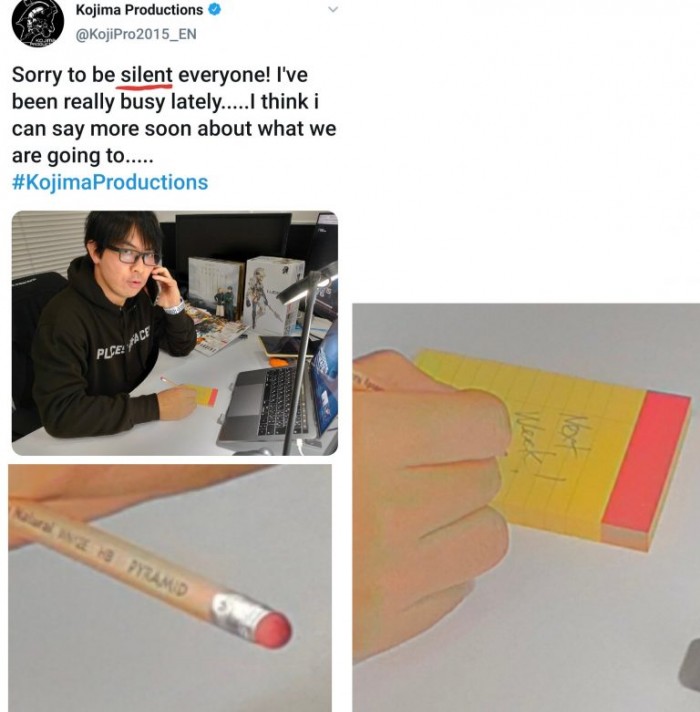 直到最近,小岛工作室Kojima Productions发布了新的推文,看起来工作室的公关部领导Aki Saito正在便利贴上写东西,如果你放大后,就会发现一些线索。