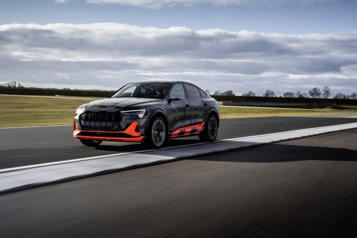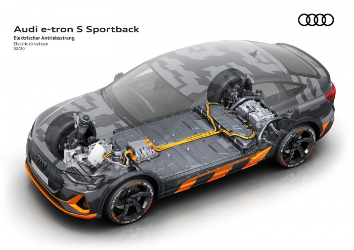 据悉,新性能车型将被叫做E-Tron S和E-Tron Sportback S。奥迪表示,跟非S车型相比,这些车型将更灵活、更锐利、更有活力,而这都要归功于第三个电动发动机的加入(其中两个在后轴,一个在前轴),它将总功率从265kW(350马力)提升到320kW(429马力),或在8秒的boost模式下达到370kW(496马力)。两款车都能在4.3秒时间内完成百公里加速,比标准版要快了一秒多的时间。