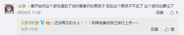 2月28日,腾讯运营手游《云梦四时歌》发布停运公告:应研发团队需求,经过双方友好协商,我们遗憾地宣布:腾讯将于2020年4月28日11点正式停止《云梦四时歌》在中国大陆地区的运营。根据停运安排,2020年2月28日11点,停止游戏充值和新用户注册,停止游戏下载。