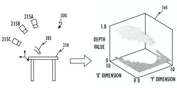 按照该专利的描述信息,苹果这个检测系统相当简单。当外部摄像头在实时环境中协同工作的时候,会生成三维深度图,通过测量物体(比如手指)与可触摸表面的距离,然后确定物体何时接触该表面。最重要的一点是,这种距离测量设计即便是在摄像头改变位置时也能使用,一部分是依赖对机器学习的模型进行训练以此识别触摸的输入。