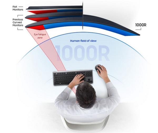 如果你对1000R曲率没有概念的话,用简单一句话来说,1000R就是人眼的极限视野。