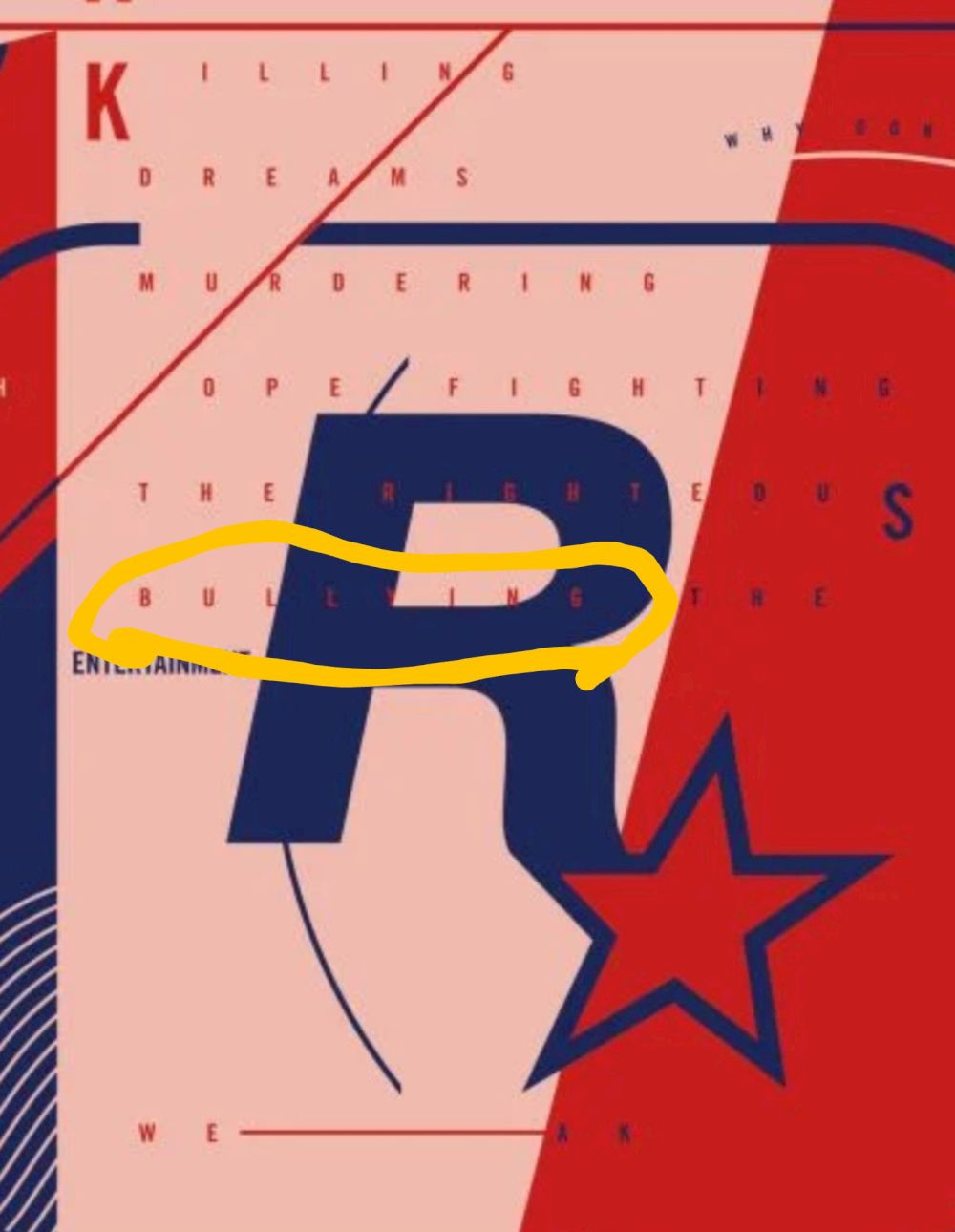 刷新页面之后再打开导航栏,又能看见另一张新图,这次是美国 70 年代谍战片的海报风格。Rockstar 标志上整齐地写着这么一段话:杀死梦想、谋杀希望、打击义人、欺凌弱者(Killing dreams Murdering hope Fighting the righteous Bullying the weak),旁边弯曲上的字则是:为什么不告诉我出了什么问题?(Why don't you tell me what went wrong?)