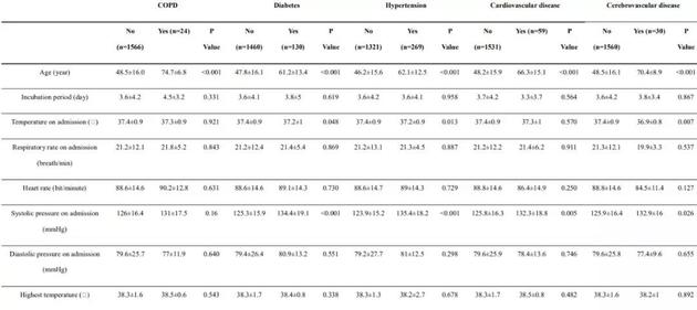 这里列出了人数较多的基础疾病特征