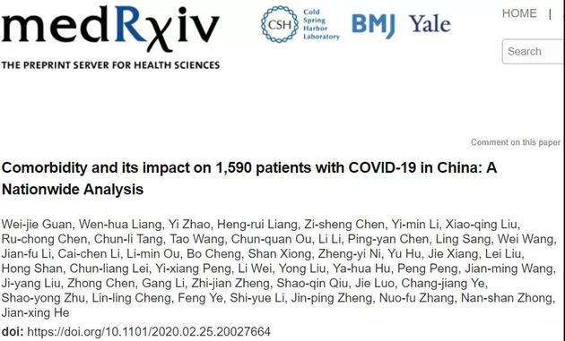 这项分析的通讯作者,是钟南山院士和广州医科大学附属第一医院的何建行教授,分析涉及了全国31个省近1600例新冠肺炎患者,其中约40%是湖北省内收治的患者。