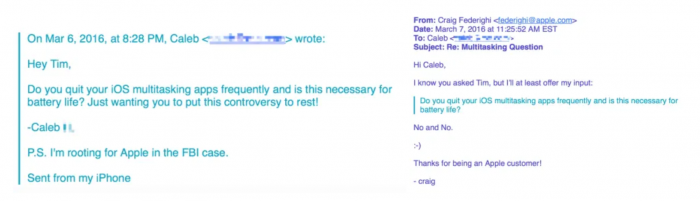 iPhone 也是类似的情况。关于要不要清理后台的讨论几年前就有,国外还有网友发邮件问过库克,虽然库克本人没有回答,但得到了苹果软件工程负责人 Craig Federighi 的回应:“不要。”iOS 应用在后台时处于暂停状态,会释放内存给其它应用,而如果你将它强制退出,那么重新启动需要耗费的 CPU 能力和电池能量,要比从暂停状态下直接唤醒更多,从而影响 iPhone 电池寿命。