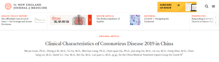 专家对新冠病毒的临床特征又有了进一步认识。当地时间 2020 年 2 月 28 日,钟南山、李兰娟等近 40 名专家在《新英格兰医学杂志》(NEJM)上发表了名为“ Clinical Characteristics of Coronavirus Disease 2019 in China”(2019 年中国冠状病毒的临床特征)的研究。