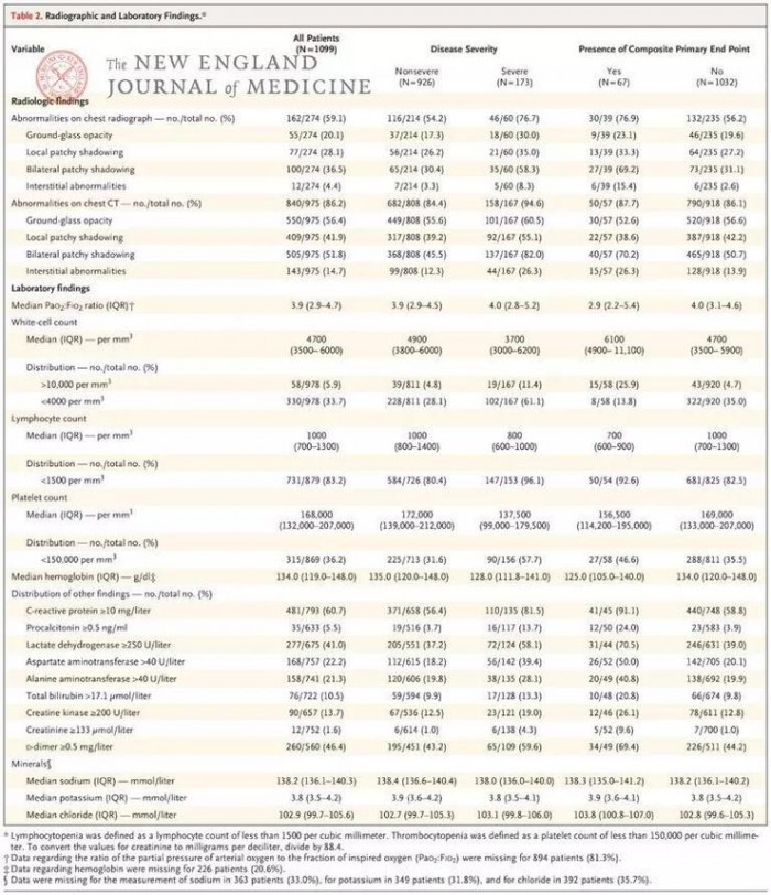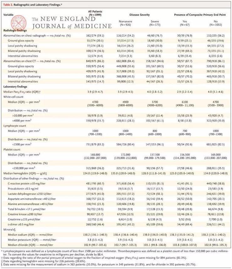 入院时,83.2% 患者淋巴细胞减少,36.2% 血小板减少,33.7% 白细胞减少;