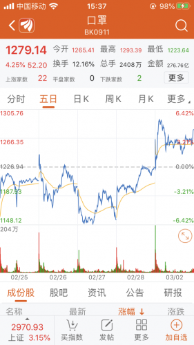 上周,受到新冠肺炎疫情在全球加速蔓延的影响,全球各大股指均出现连续大跌,但是口罩概念股仍能在此背景下一枝独秀:2月28日,A股三大股指重挫,口罩概念板块涨幅超3%。