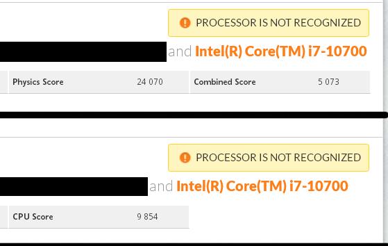 下图是3DMark Time Spy的成绩截图,i7-10700的物理分数9854。需要注意的是,由于这款处理器尚未发售,因此3DMark并未成功识别。