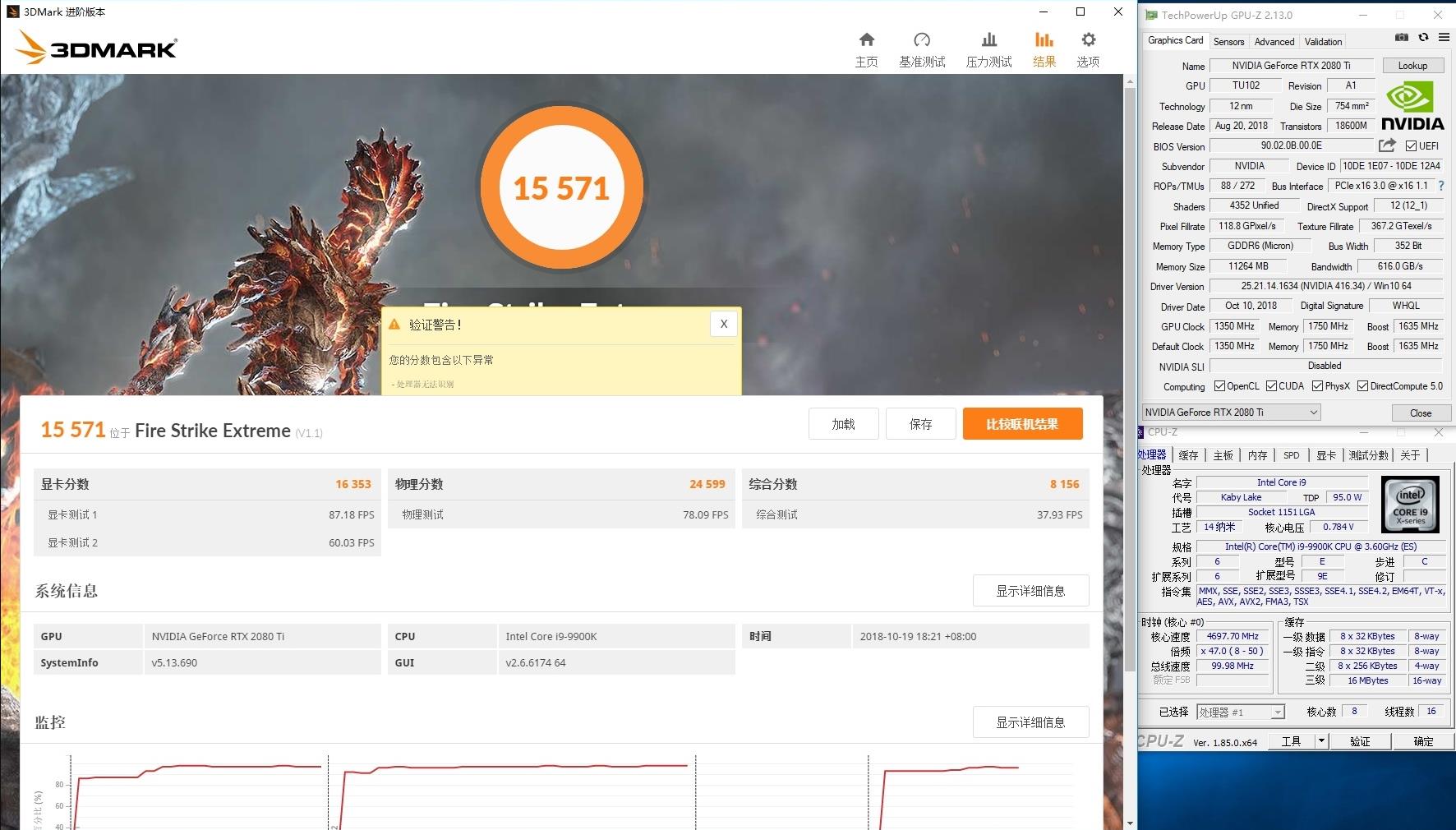 在我们2018年做的首发测试中,i9-9900K运行3DMark Fire Strike Extreme的物理成绩为24599。