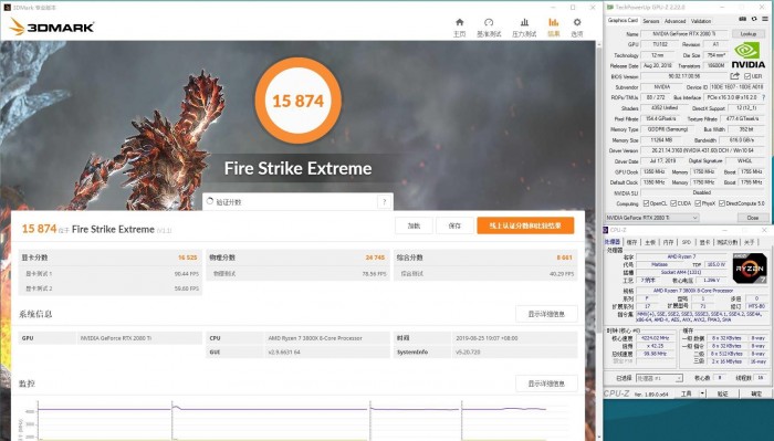锐龙7 3800X3DMark Fire Strike Extreme的物理成绩为24745。