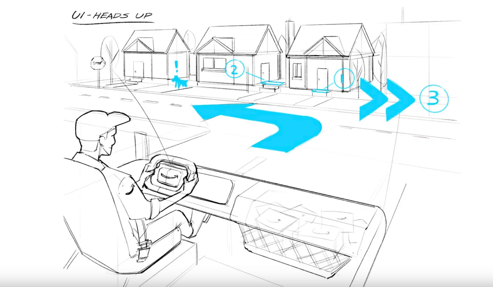 亚马逊电动货车将有温度控制的座椅,以及加热的方向盘和扶手。安全带和扶手显然会自动根据驾驶员身高和体重进行调整,电动货车提供自动紧急制动,行车辅助,行人预警系统,驾驶员分心监控器。另外,一些想法似乎更为幻想。亚马逊显然正在探索增强现实系统,该系统可以将交付细节投射到未来的路线上。这不仅会提供导航说明,而且还会潜在地标记出诸如客户希望将其包裹留在何处的信息,甚至会标出诸如狗之类的潜在危险。