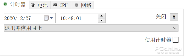 而Don't Sleep最好玩,也是最有用的,是下面的四个选项卡,分别是“计时器”、“电池”、“CPU”以及“网络”。Don't Sleep可以阻止电脑休眠让你一直挂机,但一直挂机挂到什么时候?挂机能不能自动结束?用Don't Sleep的话,那还真可以。