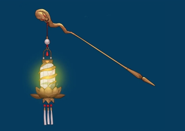 《白蛇传》的故事发生在杭州西湖,因此我们在武器的设计上使用了荷花元素。灯笼主体以荷花为底,外侧有蛇形弧线盘旋而下;灯笼杖身前端设计成蛇头形状,增加神秘感。
