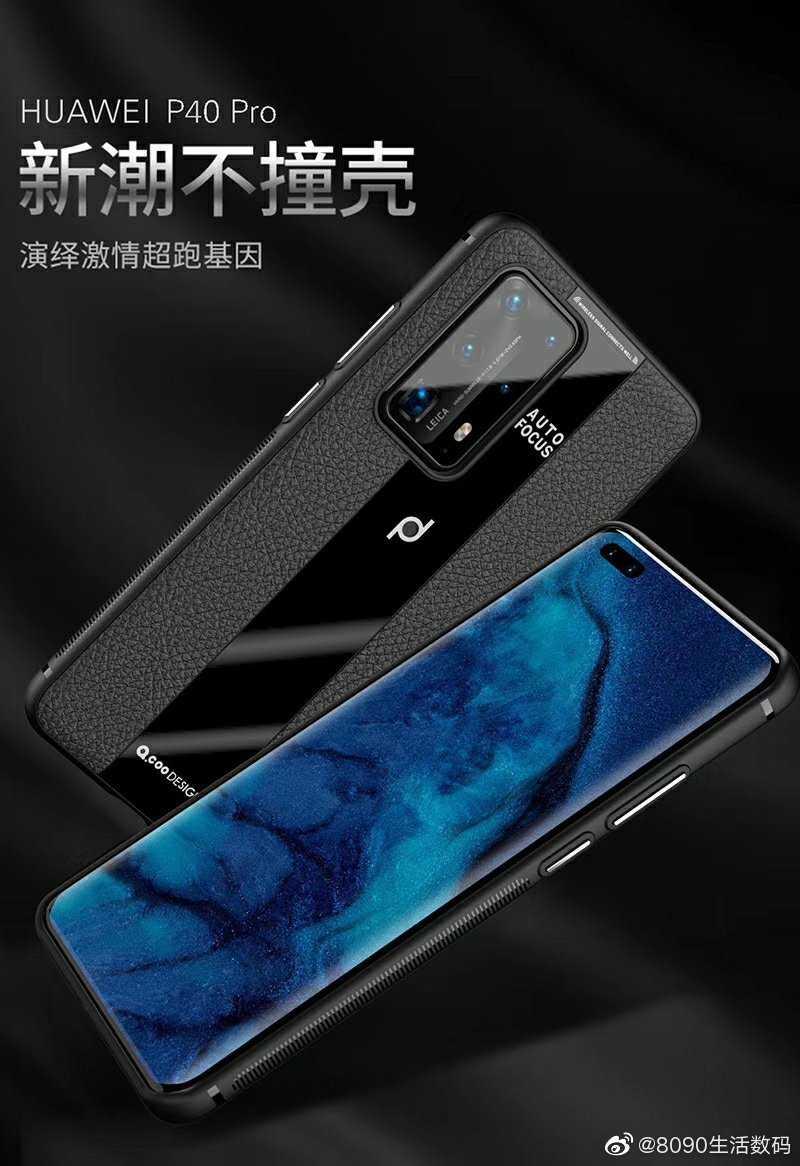 3月4日消息,博主@8090生活数码曝光了P40 Pro戴壳渲染图。图中P40 Pro与此前evleaks曝光的渲染图一致:矩阵相机、徕卡五摄(包含一枚潜望镜头)、双孔四曲面全面屏等等。值得注意的是,P40 Pro戴的这款保护壳借鉴了Mate 30 RS保时捷设计,保护壳上的Logo神似保时捷设计Logo,戴上之后像是保时捷设计打造的P40 Pro特别版。