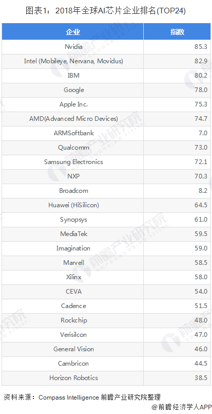 值得注意的是,在市场调研机构CompassIntelligence2018年发布的AIChipsetIndexTOP24榜单中,英伟达高居第一,华为海思排名12位,而寒武纪则是第23位。